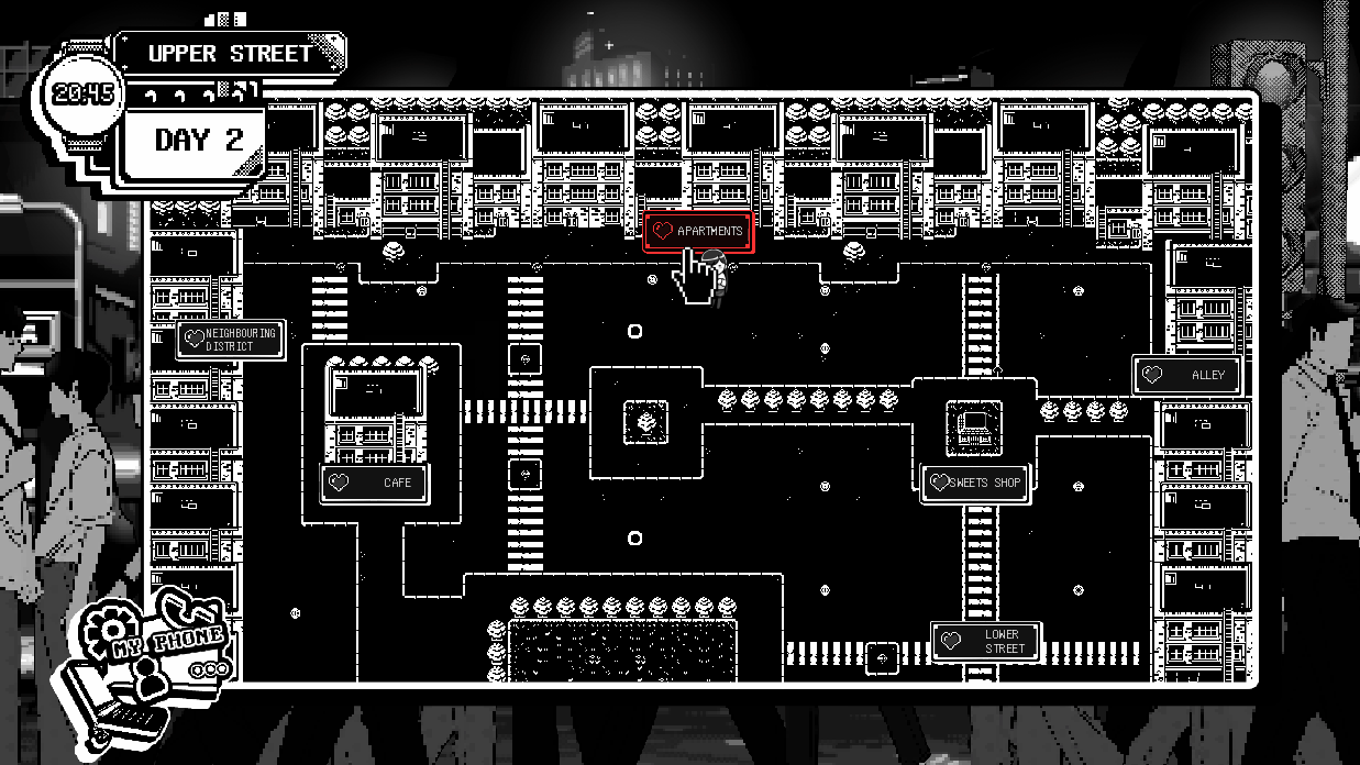 i really, really loved this game concept! the story is already so interesting, the art style is gorgeous, and i especially loved the gameplay! the map and the possibility of going to different places and unlocking scenes are so cool, and the minigames to determine our actions or to help calm the mc during anxiety crises were very creative. i’m really looking forward to updates – this was one of my favorite visual novels around here! thank you so, so much ٩(ˊᗜˋ*)و ♡